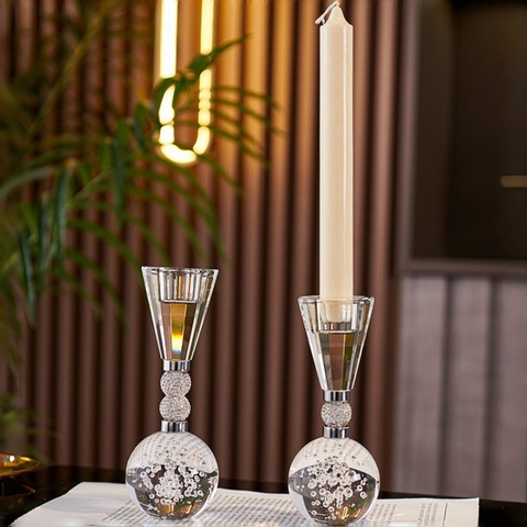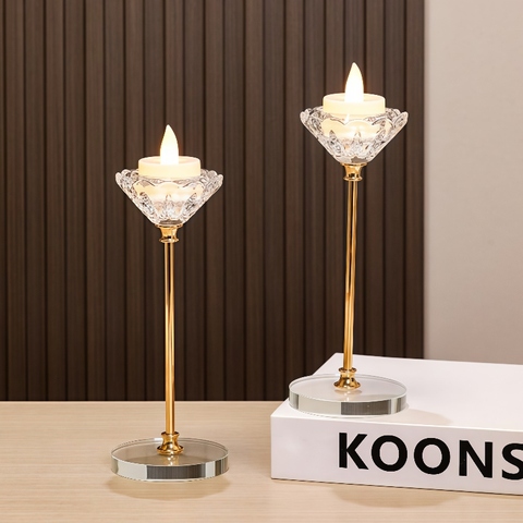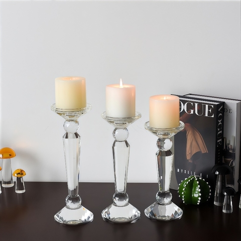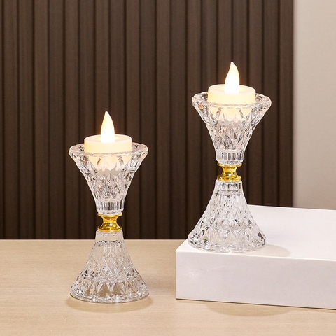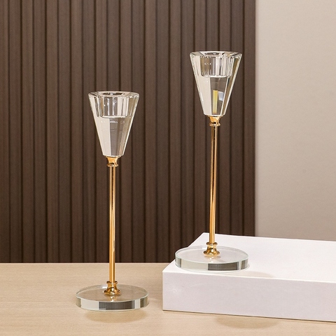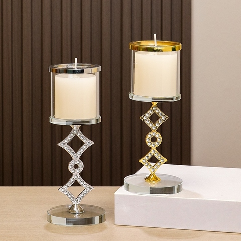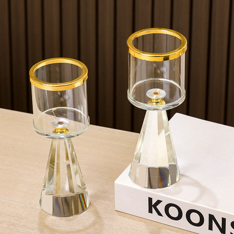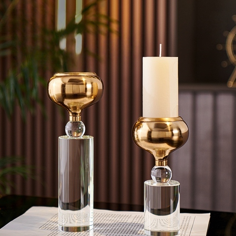 Portavelas de aleación de cristal elegante simple personalizado OEM para decoración de hotel en casa para mesa de restaurante-Venta al por mayor directa de fábrica